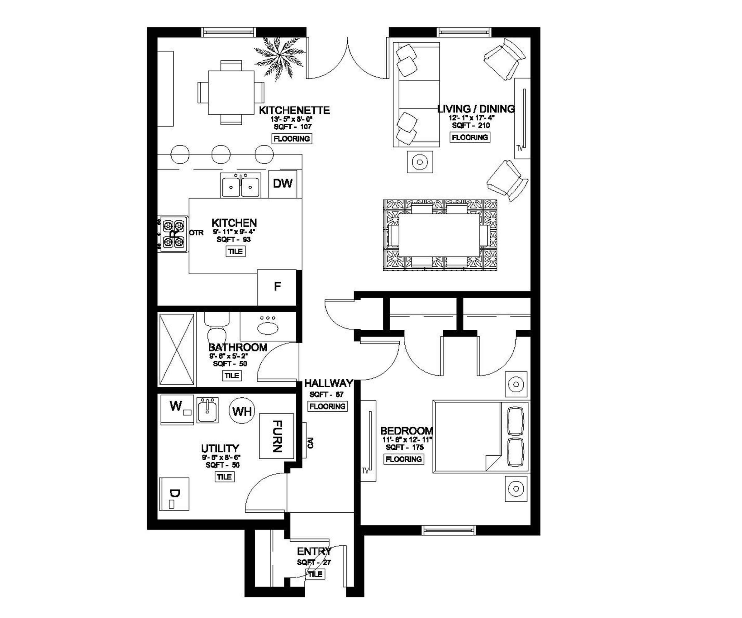 • Open-concept kitchen, living and dining space