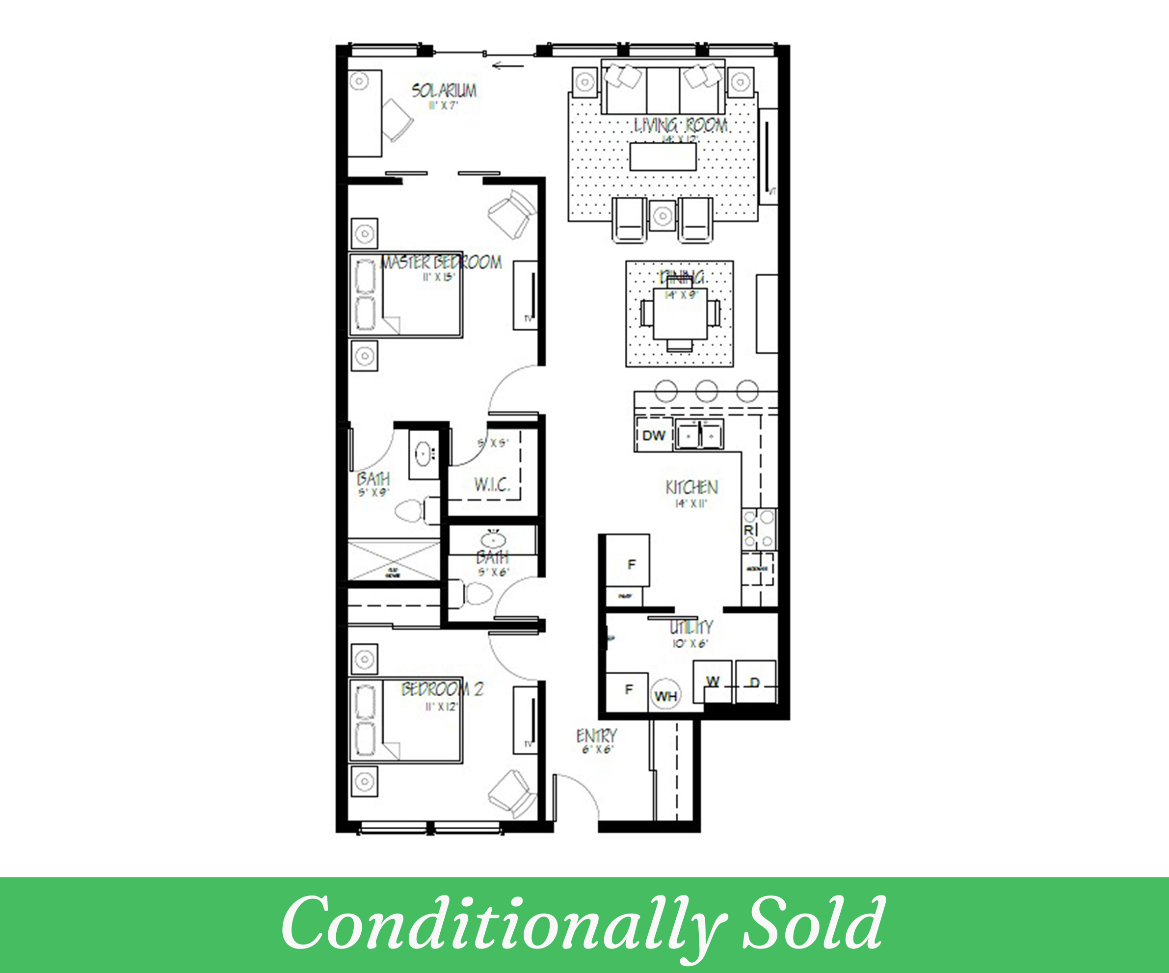 Carpet-free home with beautiful engineered hardwood in both bedrooms, the solarium and living/dining room