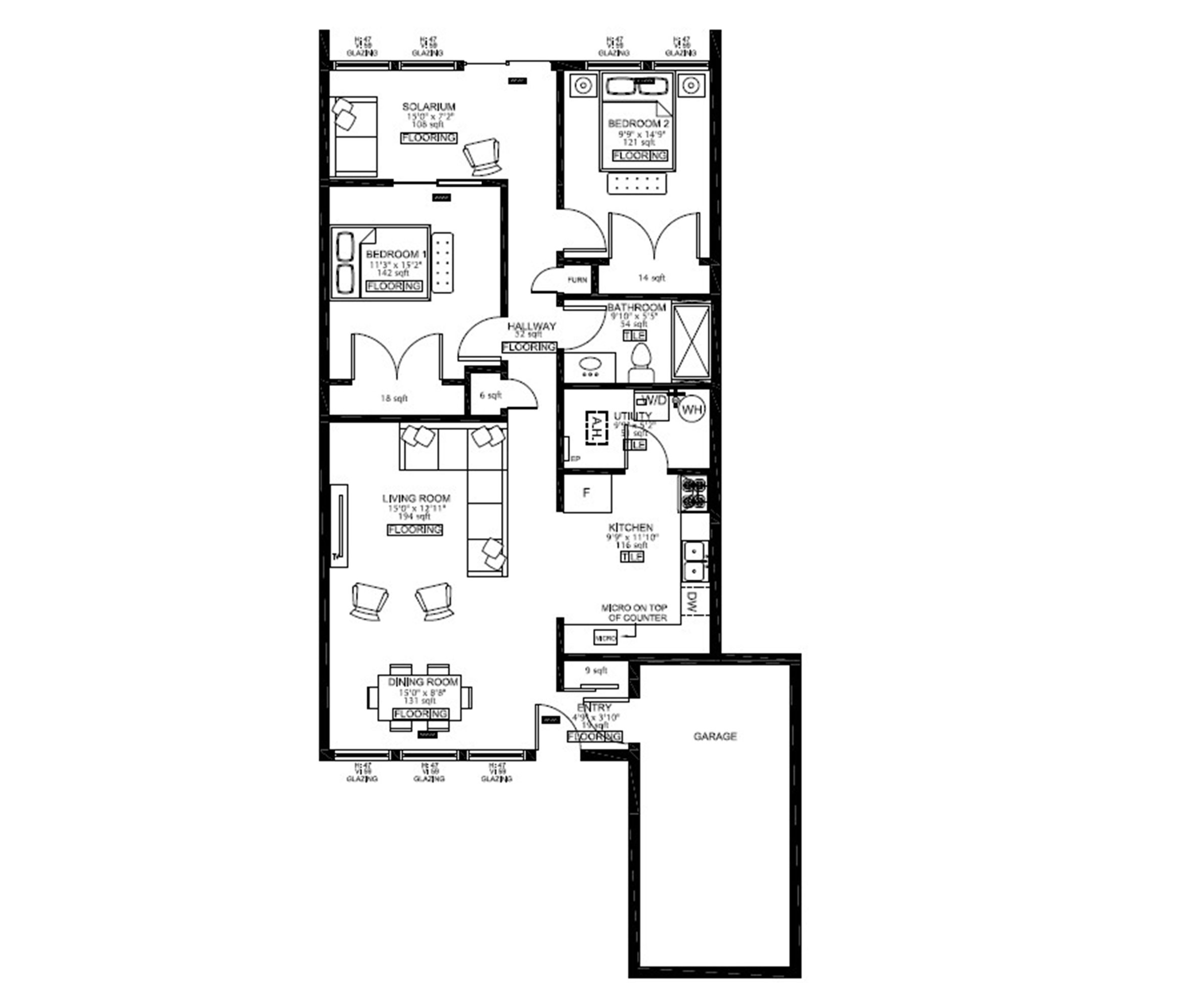 • Solarium is a versatile space that can be used as a sitting area or office space while looking onto the green space behind the home