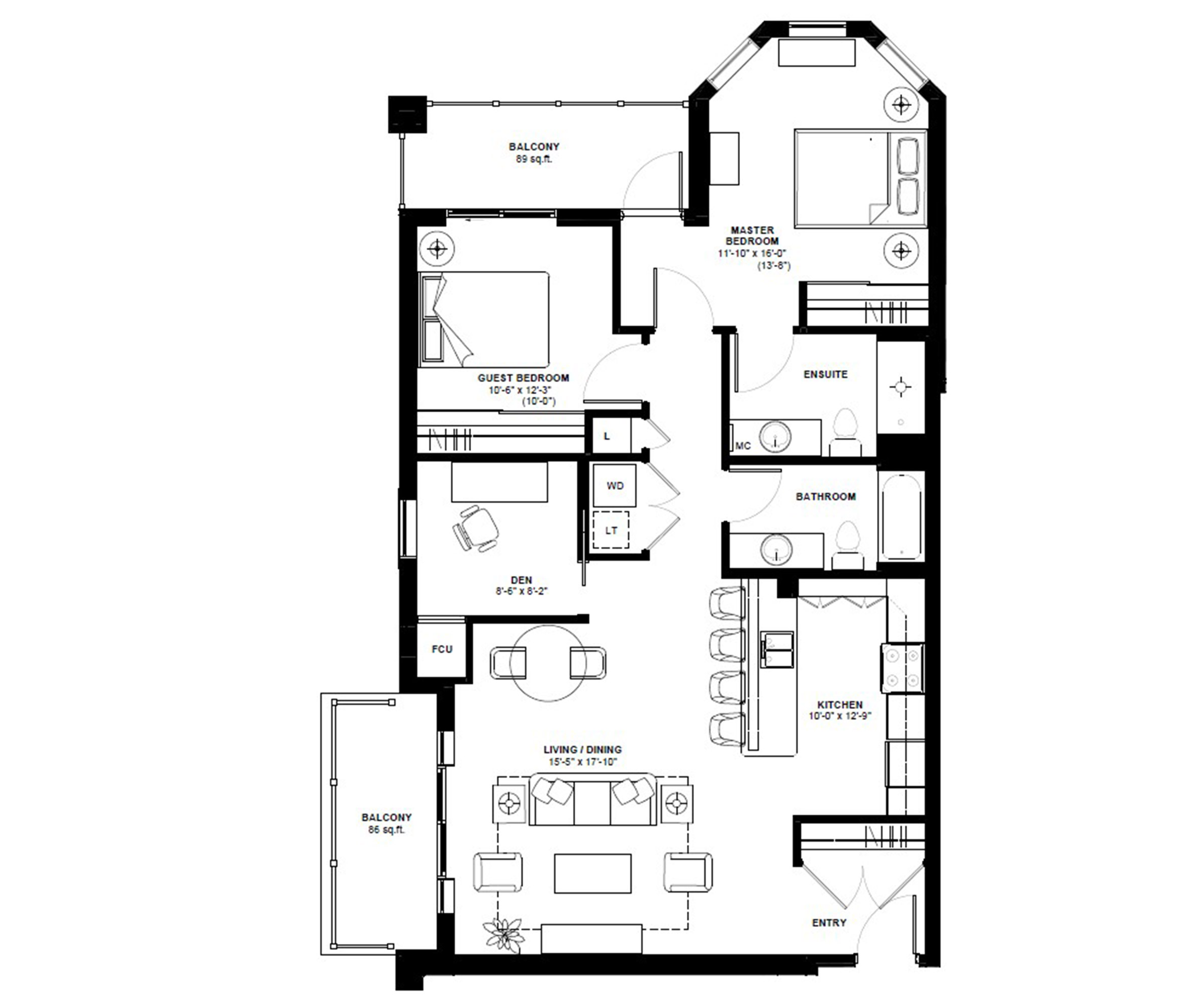 Carpet-free two bedrooms plus den and two full bathroom suite
